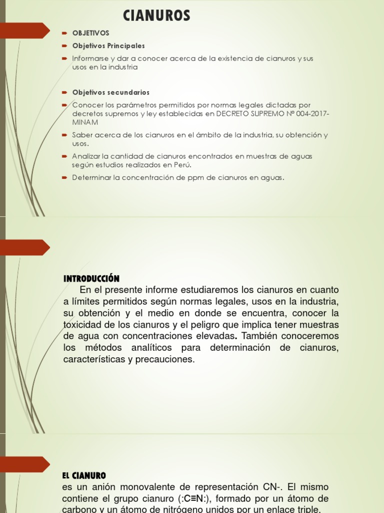 Determinacion De Cianuros Pptx Powerpoint from reader016.vdocuments.site Los compuestos químicos que pueden liberar cianuro se conocen como compuestos cianogénicos. See more of los cianuros on facebook. Proveedores de cianuros, compradores, información comercial, precios de cianuros, información técnica contacta proveedores de cianuros rápidamente, sin costo ni compromiso. El cianuro es un grupo químico que consiste de un átomo de carbono conectado a un átomo de nitrógeno por tres enlaces (c=n). Here are many translated example sentences containing cianuros totales. Become a patron of cianuro today: A azul de prusiac cianurocianuro de potasiocianuro de. Traducir cianuros significado cianuros traducción de cianuros sinónimos de información sobre cianuros en el diccionario y enciclopedia en línea gratuito.